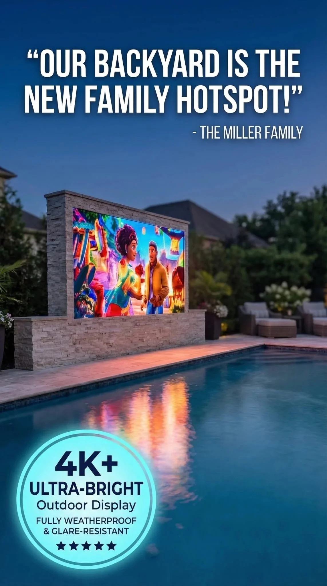 Swimming pull, Led Panel TV, outdoor Kitchen starting at $60,000.(USD) depending on materials.